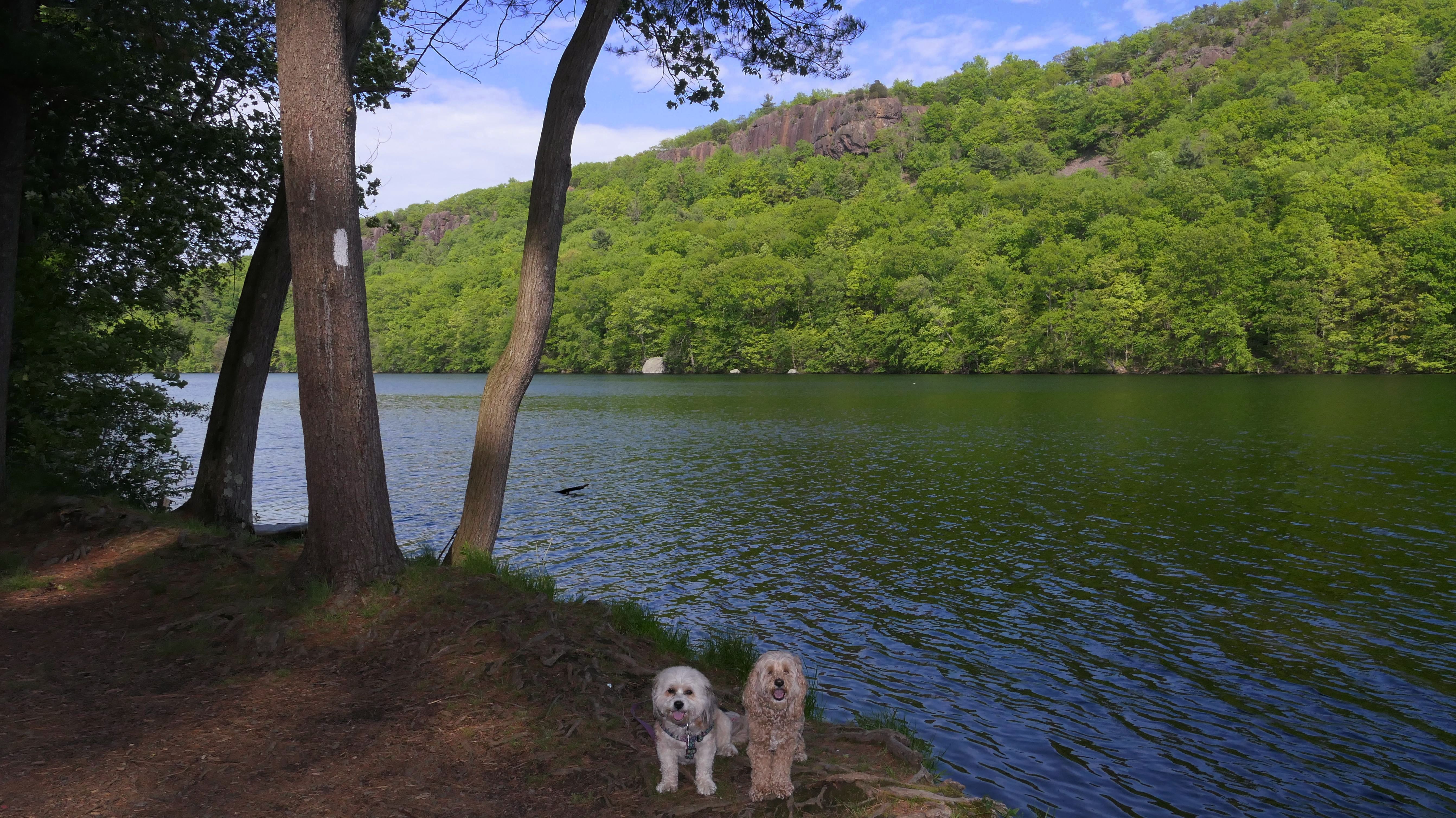 It's hard to believe that two plus years into this project, I'm still finding places in Connecticut as nice as this place! We hiked an easy trail along the west side of the Hubbard/Bradley Reservoir at Guiffrida Park. We hiked up to the bridge and then turned around. The trail continues around the other side of the reservoir, but the terrain is way too difficult on that side for the small dogs. It was only in the upper 60's and breezy here, but Mandy still insisted on going in the water a few times. The dogs look like quite messy in a few of these pictures, but everyone had a good time!