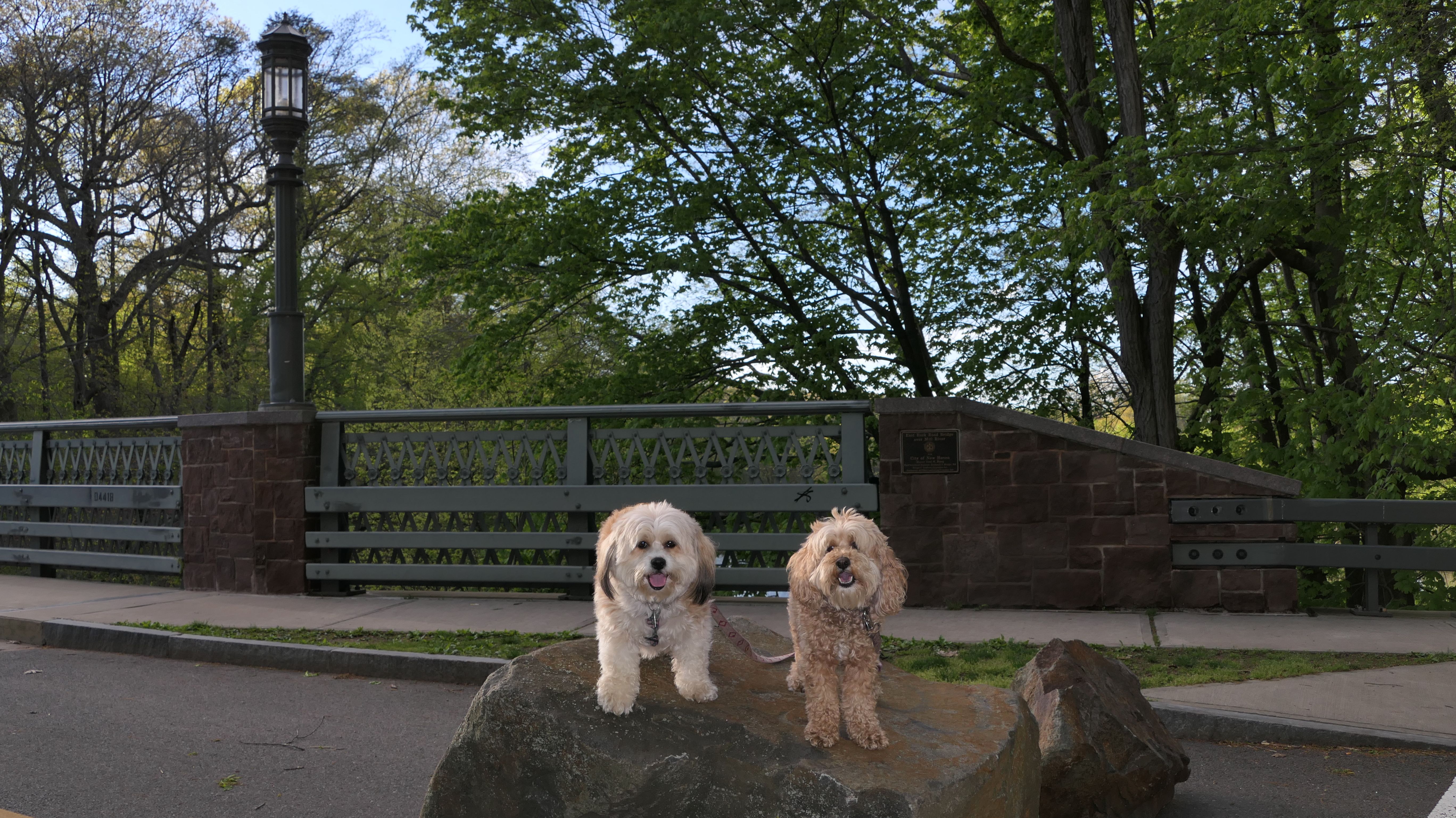 The idea for this trip was to see the cherry blossoms at Wooster Square Park, but we were too early. The cold weather has delayed their bloom. So we parked near the park and took a walk through the downtown area, and wound up walking through Yale instead. This is a completely different section of Yale than our previous visits. In addition to walking around the public streets, we also walked through the campus and the various courtyards. It's a beautiful campus, and even though there weren't any cherry blossoms at Wooster Square Park, there were plenty of spring blooms here. We also walked through "The Shops at Yale at Broadway", a public shopping area in the midst of the campus. It was during the middle of the week, so we encountered many students who were mildly amused at the dogs posing for photos. Mandy and Lexi are always super friendly with people we encounter, and one student who asked to pet them said that it made her day!