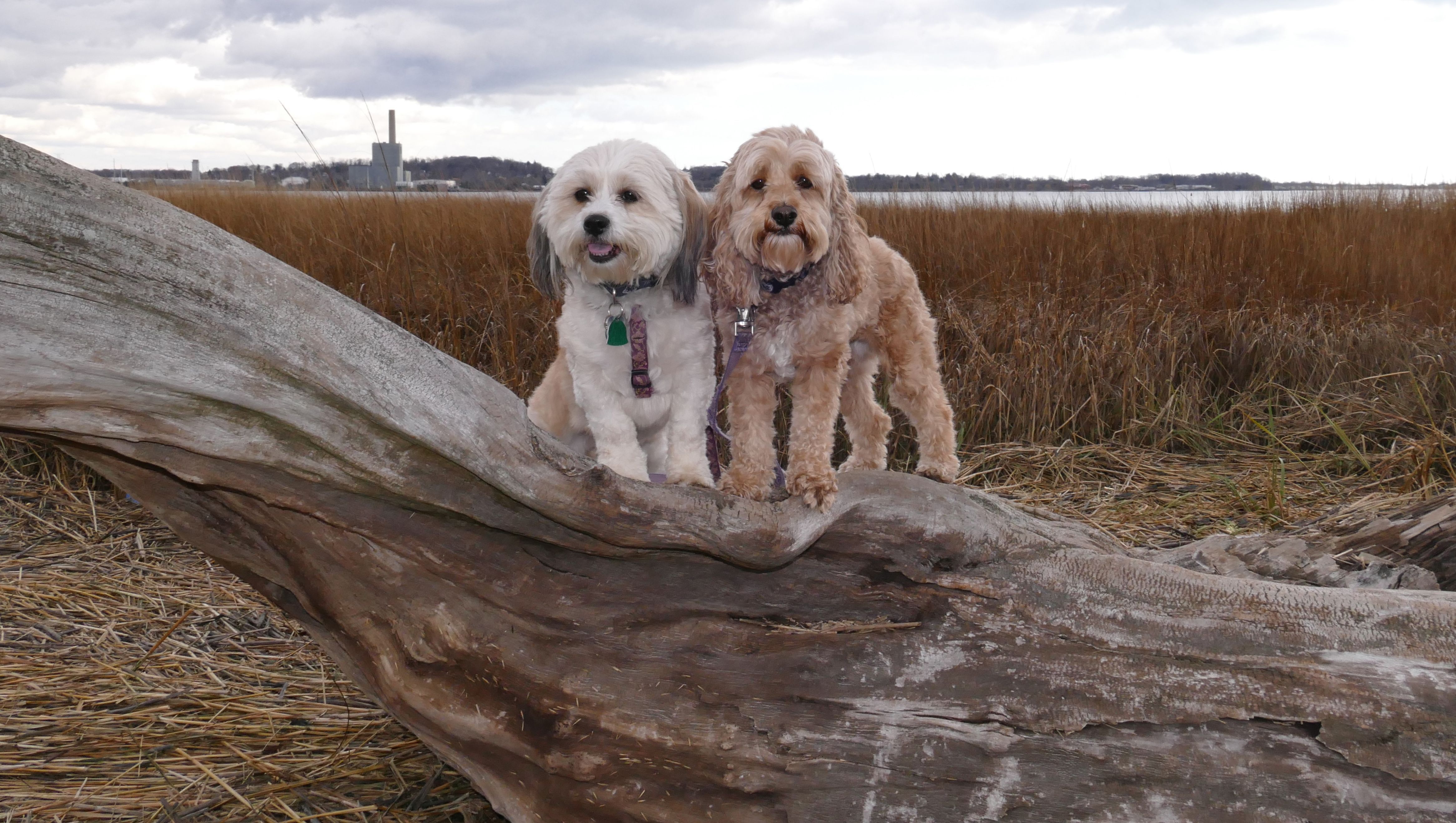 It was gray and gloomy for most of the day. The sun made a brief attempt to break through late in the afternoon, but it only left us with haze and fog, which created some interesting photo opportunities. We had visited before, first back in November of 2020, and later passed through again when we reached the southern end of the Farmington Canal Heritage Trail. It felt strange seeing chunks of ice floating in New Haven Harbor. We walked the full length of the harbor-side walkway, a little over two and a half miles round trip. On the opposite side of the street, food trucks were lined up, but every single one was a taco truck, so there wasn't much variety. The dogs enjoyed the walk, especially Mandy, who made it her personal mission to step in every puddle along the way.
