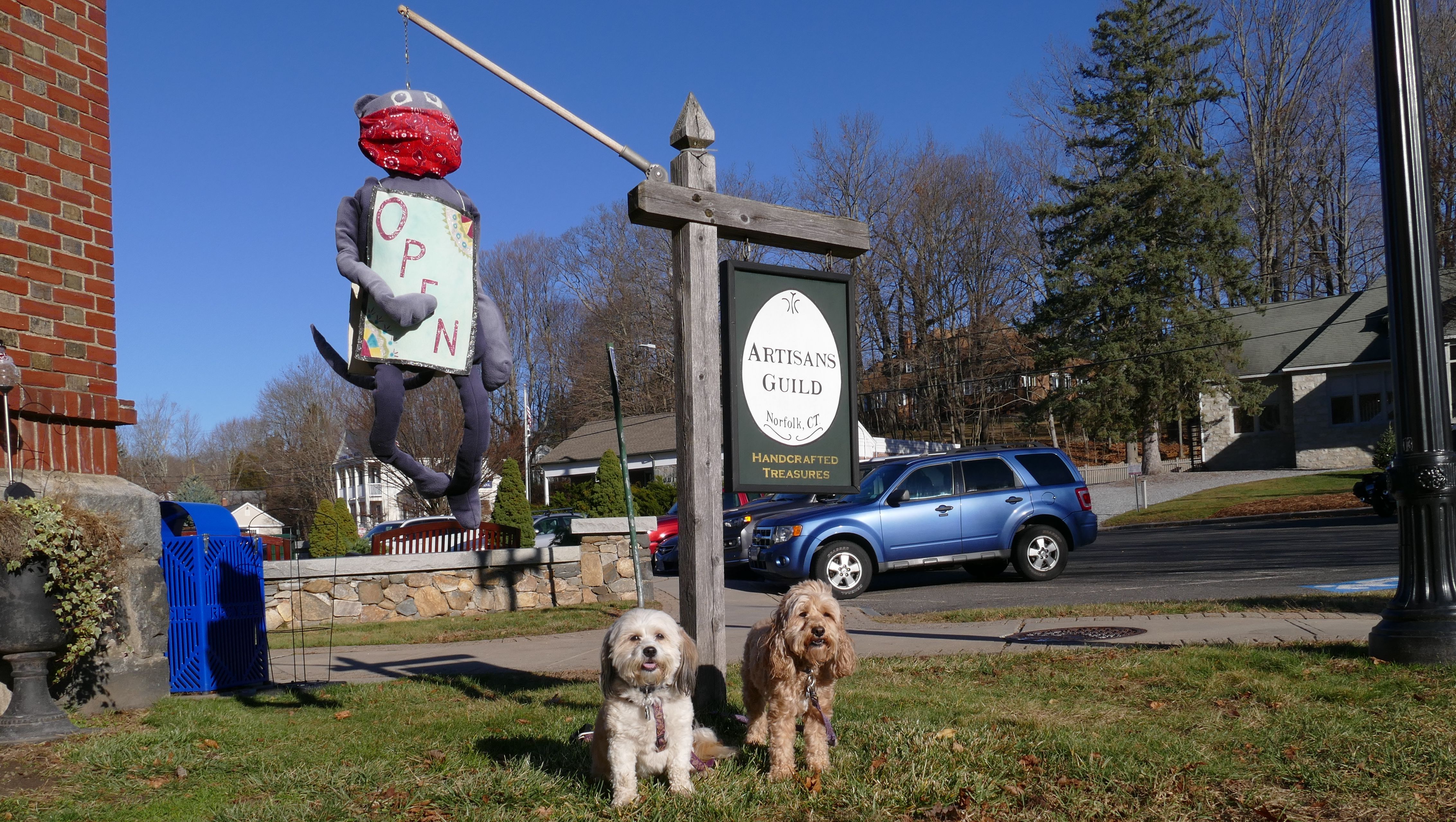 This is the area in "downtown" Norfolk that contains a bunch of little shops and Infinity Hall. I've been to a lot of concerts at Infinity Hall over the years. It's a great small venue, in the middle of nowhere! We walked around town, including the boardwalk around a marshy area, that I didn't realize was actually closed for the season (I saw the sign at the end). That hanging dummy in the first picture started blowing in the wind and absolutely freaked Lexi out, just seconds after the photo was taken.