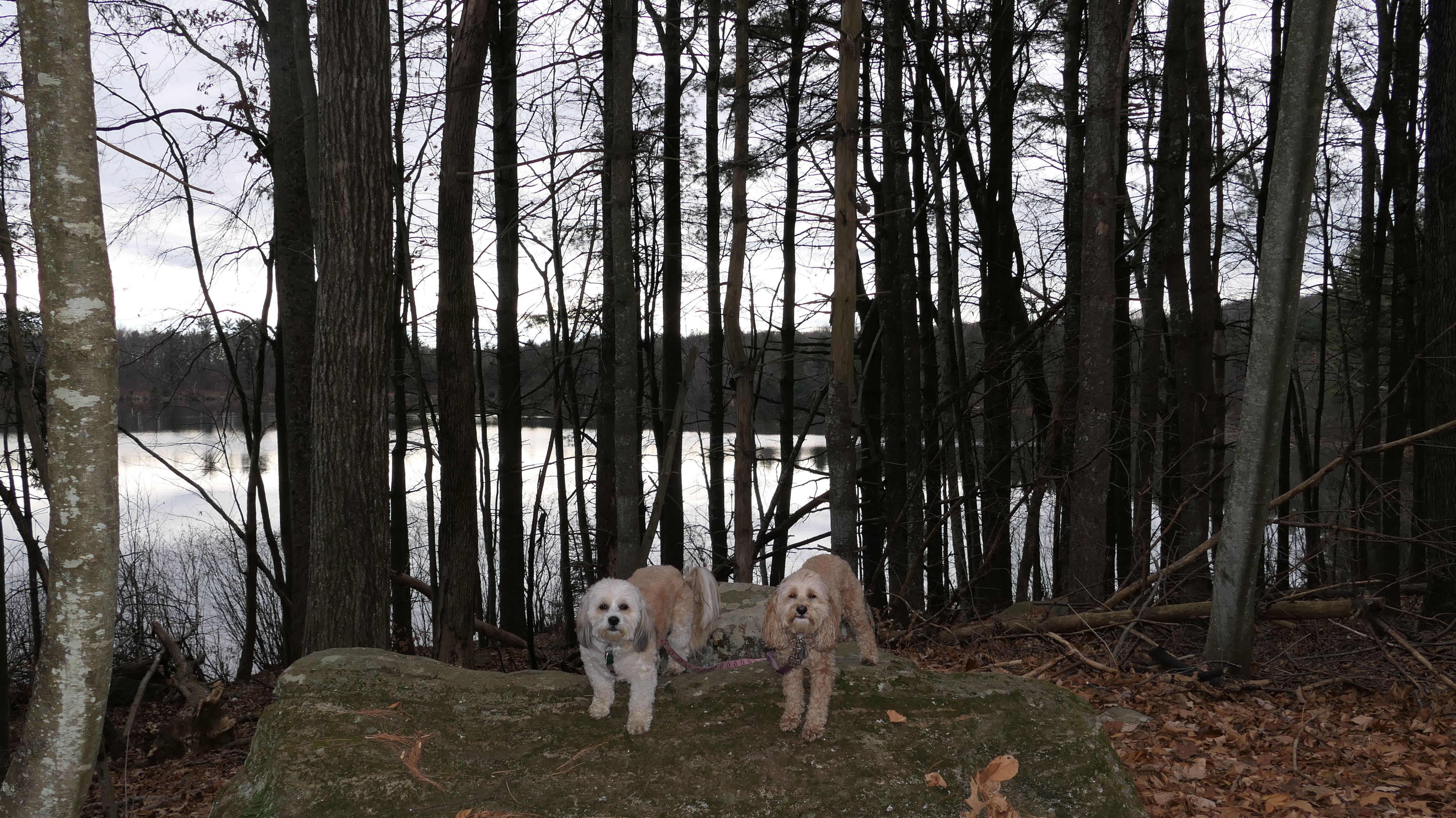 We hiked the section of the forest by the reservoirs. All-Trails said they were called the Naugatuck Resrvoirs, but Google Maps and Open Street Map called them the Seymour Reservoirs. The names make no sense, since they are located in Oxford and Beacon Falls! There's a nice series of trails here. It was a chilly, gray, overcast day in early December, so it wasn't that picturesque. The pictures here are from the Oxford section of the trail. The pictures from Beacon Falls are here.