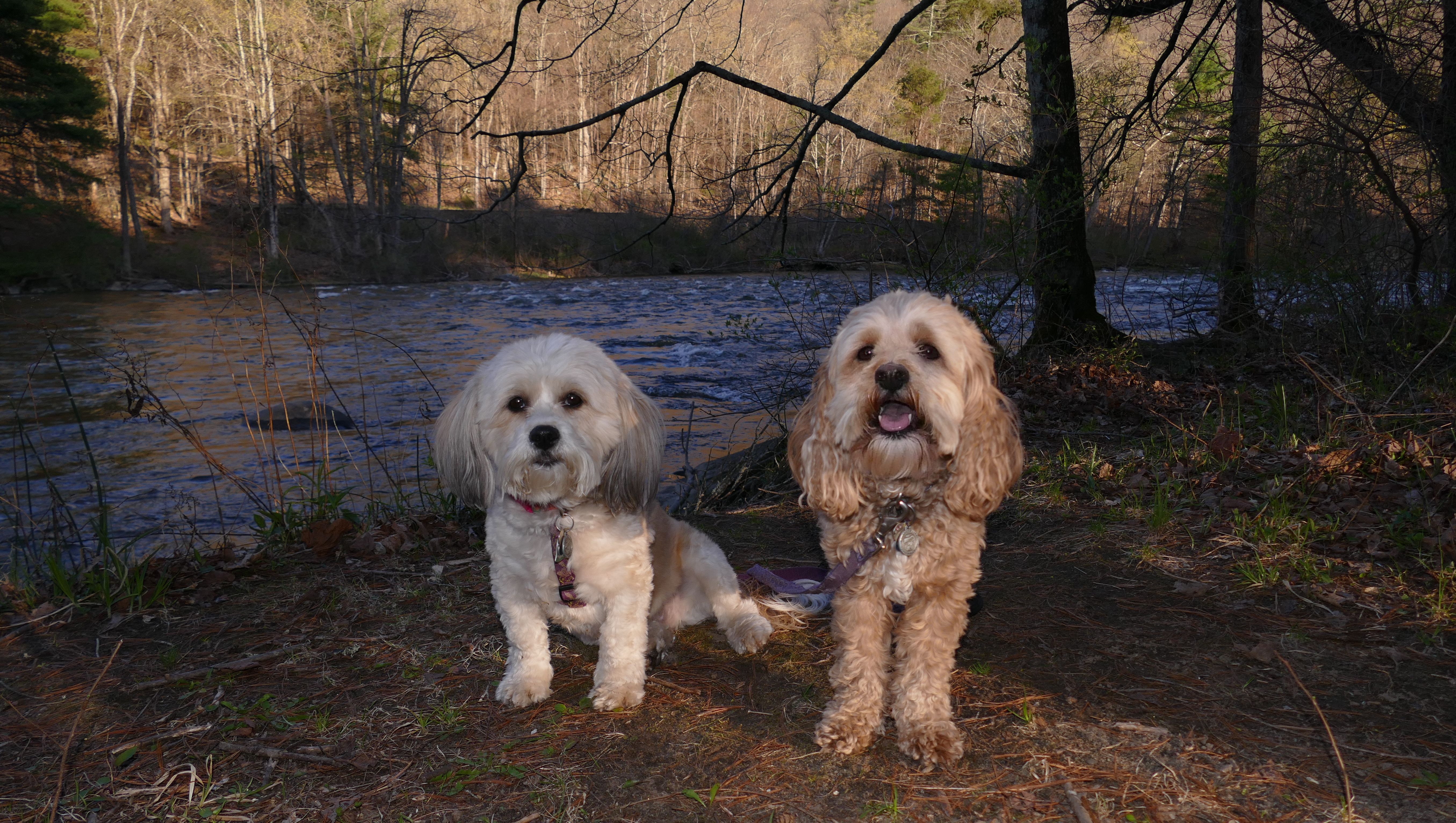 After not havig much luck at "Housatonic Meadows State Park" (see below), I decided to pick up the Applachian Trail in Sharon. We didn't get very far. As you can see, we encounterd a stream crossing made of logs and branches, and I couldn't get the dogs to go over it on their own. They were like..."No! That's not a bridge!" It was getting late, and we didn't have a lot of time anyway, so we turned around at that point and went back to the car. Had I had more time and energy, I would have tried harder, or let them go through the stream.