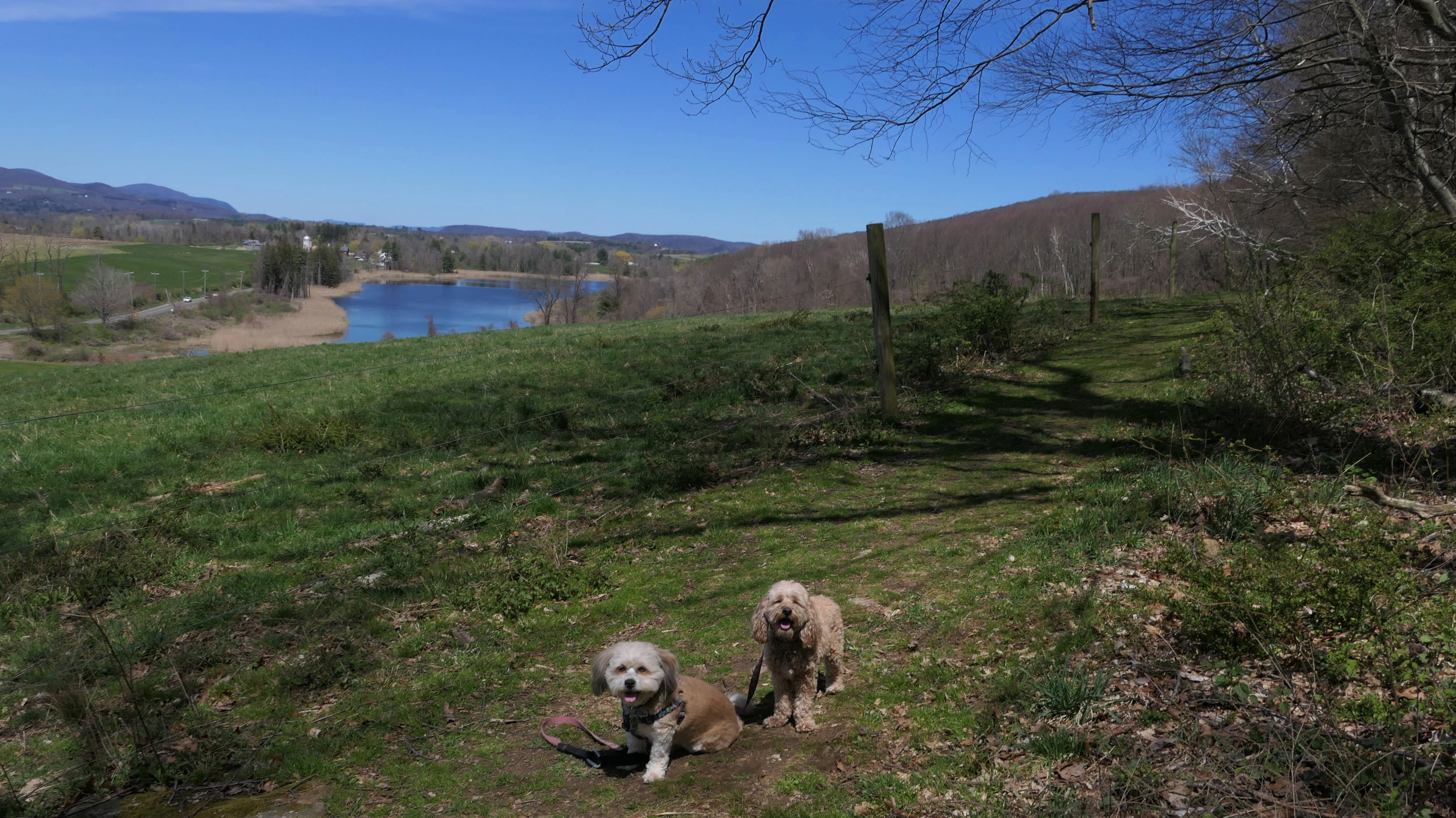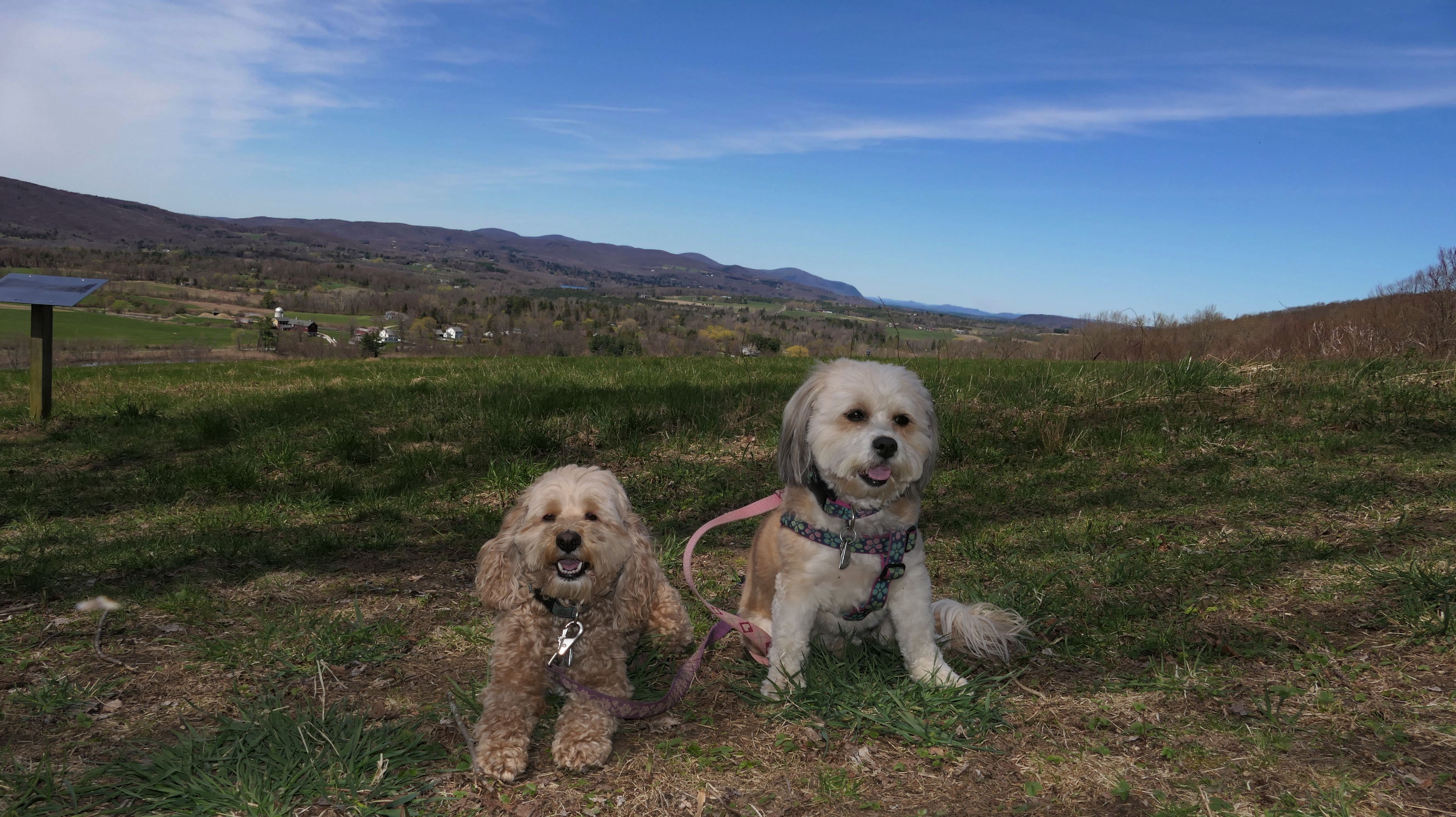 This nature preserve features a hike that went straight up-hill for a mile, leading to the Mary Moore Lookout. The first part of the trail ran along side an empty field that was protected by an electric fence. I have no idea what they are protecting with the fence. It just looked like a field to me. At one point the trail turns sharp left and runs along side the edge of what looks like someone's yard, before continuing on the other side of the field. The trail finally enters the woods, where we made our way to the lookout at the top. There are some nice views here, both on the way up and at the top. This was our second stop of the day, and unfortunately I lost my bag of dog treats at the first stop and didn't realize it until I got here. It is hard to get the dogs to pose without treats, so it's amazing the pictures came out as good as they did!