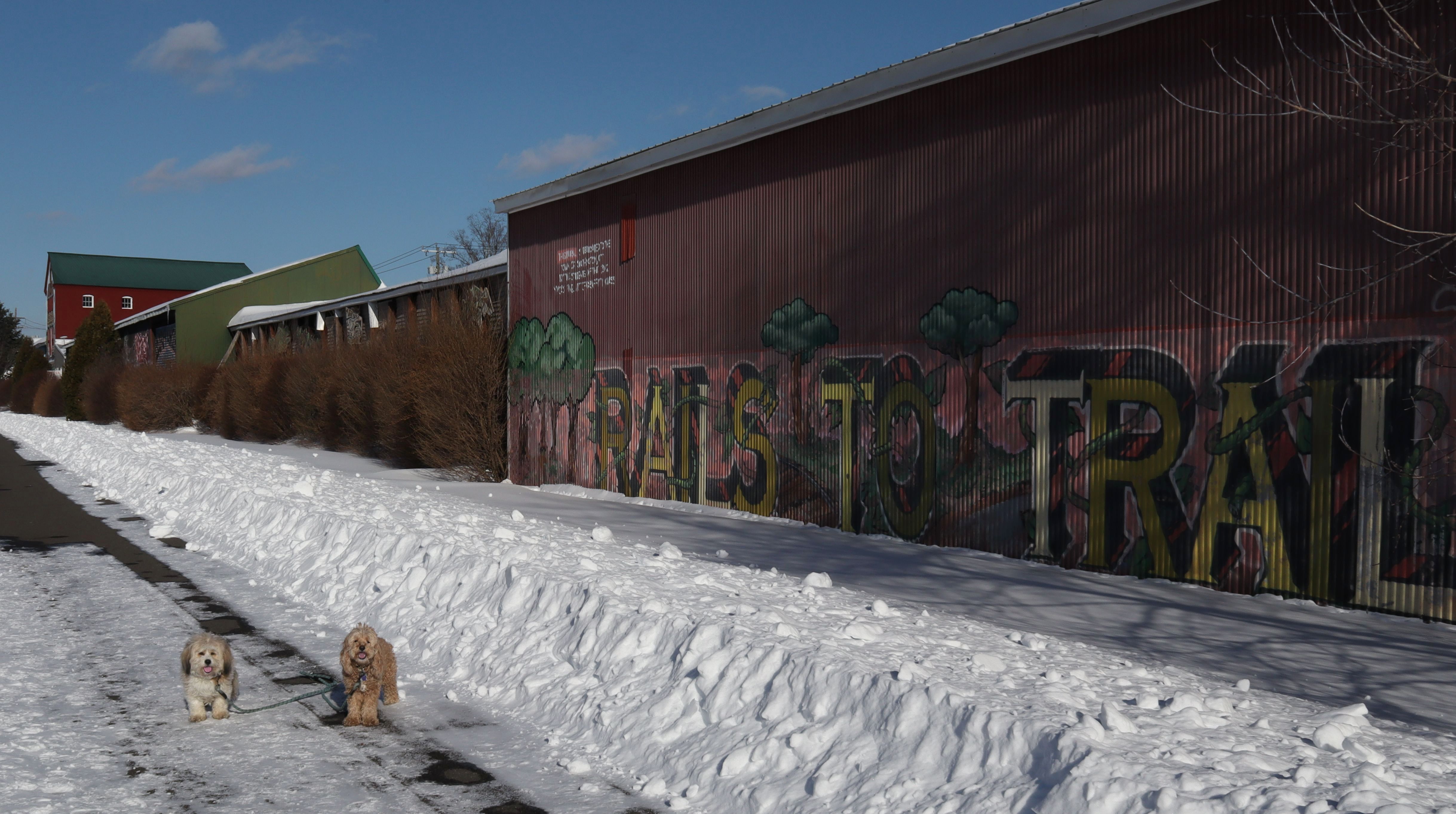 Snowmageddon lived up to the hype! Well over a foot of snow dropped throughout the region. It was the most snow we've had since we started these adventures almost six years ago. In addition to the snow, temperatures have been frigid, so we've been stuck inside for six days. I was running an errand nearby and noticed this trail was cleared off, and since temps made it up to the mid-20's, I came back later in the afternoon with Mandy and Lexi. Despite the cold weather, they were happy to get out. We started at the parking area off Mill Street and headed south until we reached Plantsville, where the trail wasn't cleared off anymore, and then turned around and headed back, walking about three miles total in the process. It wasn't too bad when the wind wasn't blowing. This is probably my favorite section of this trail, so even with the wintery conditions, this was a fun walk.