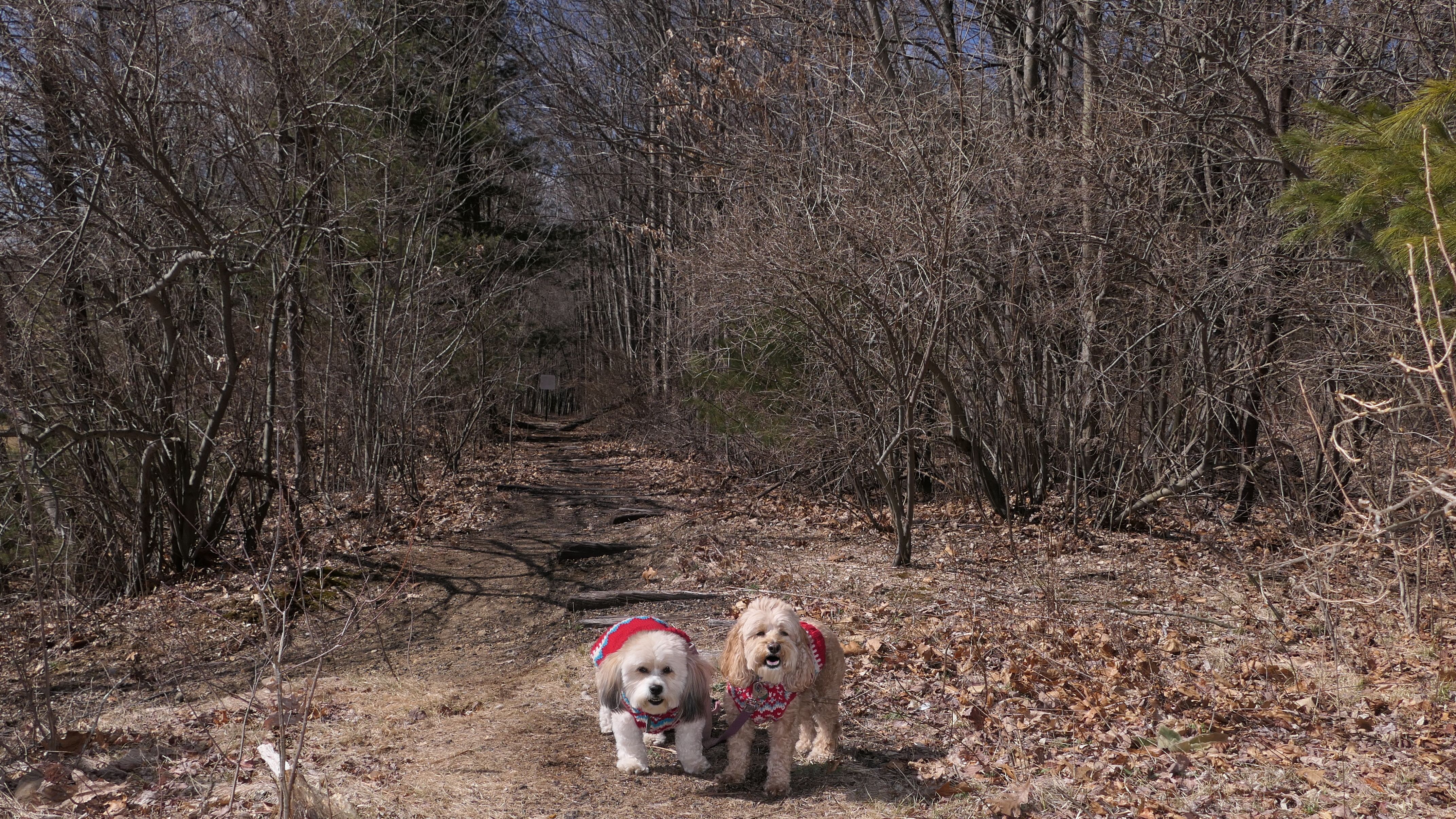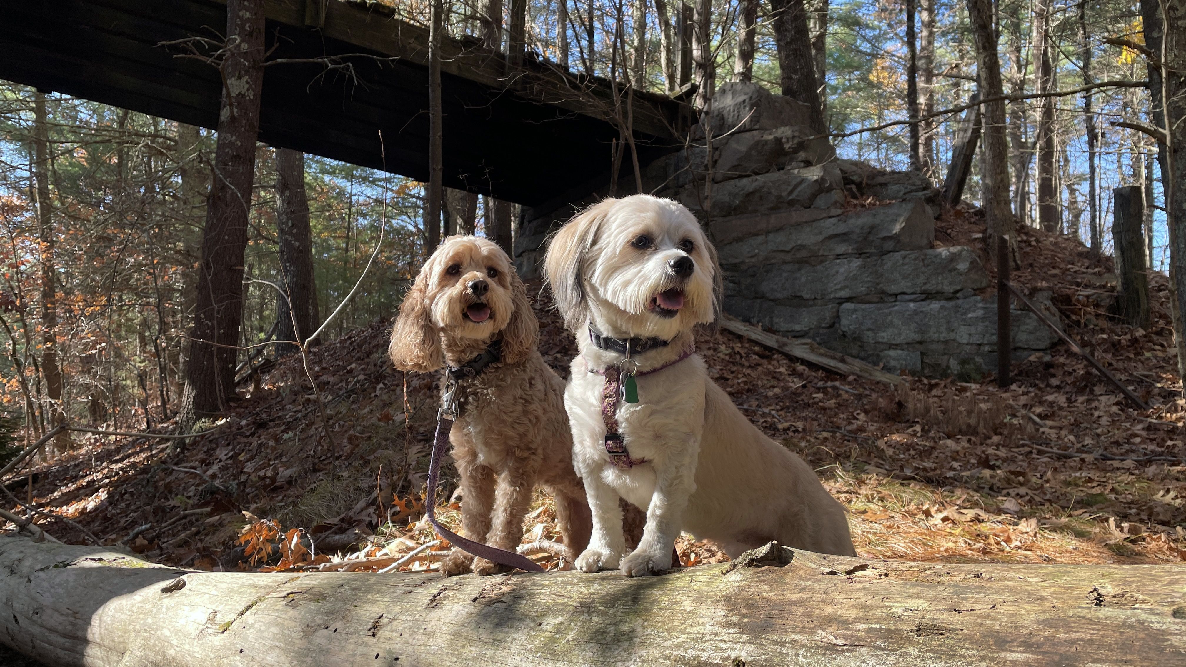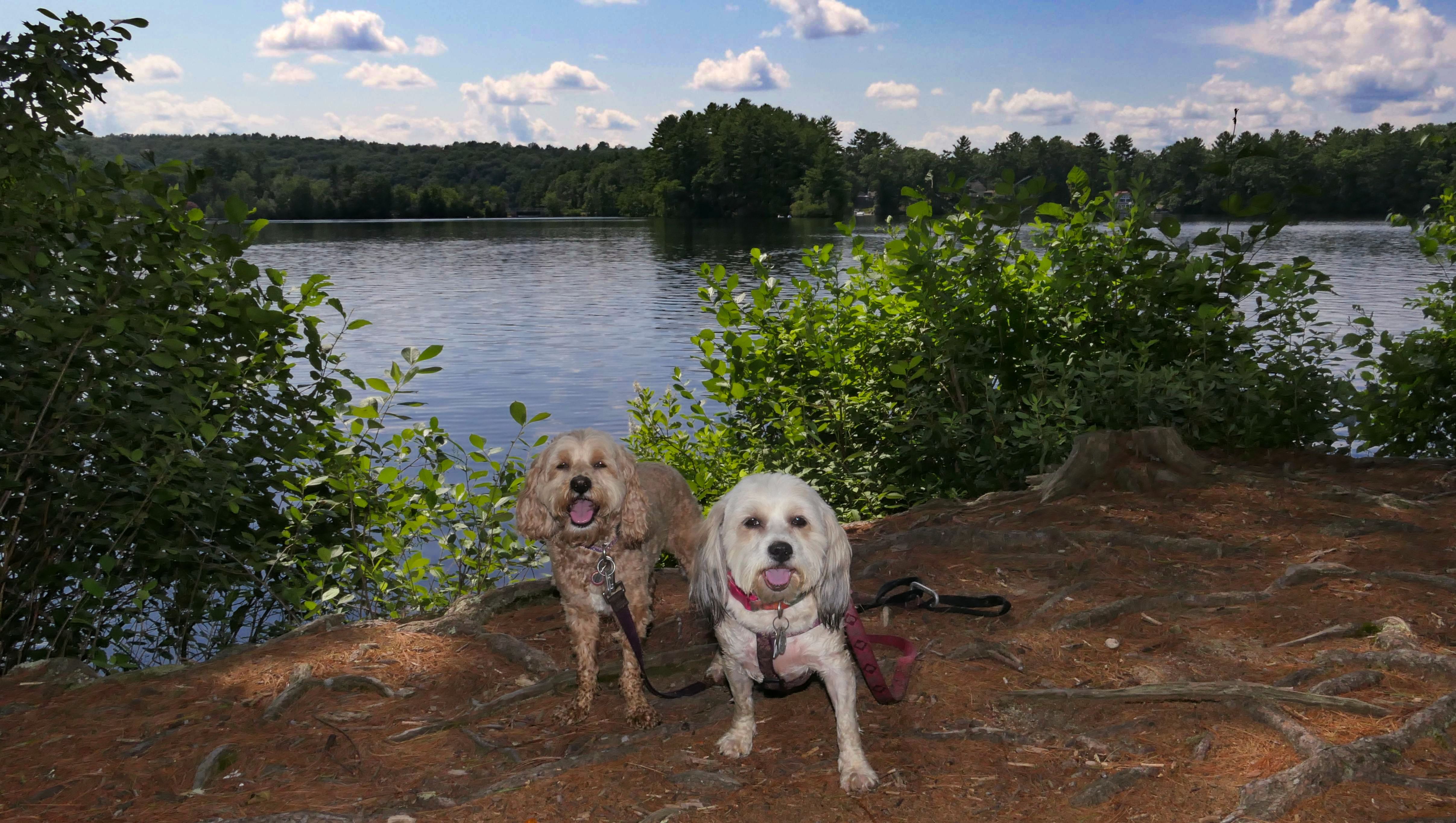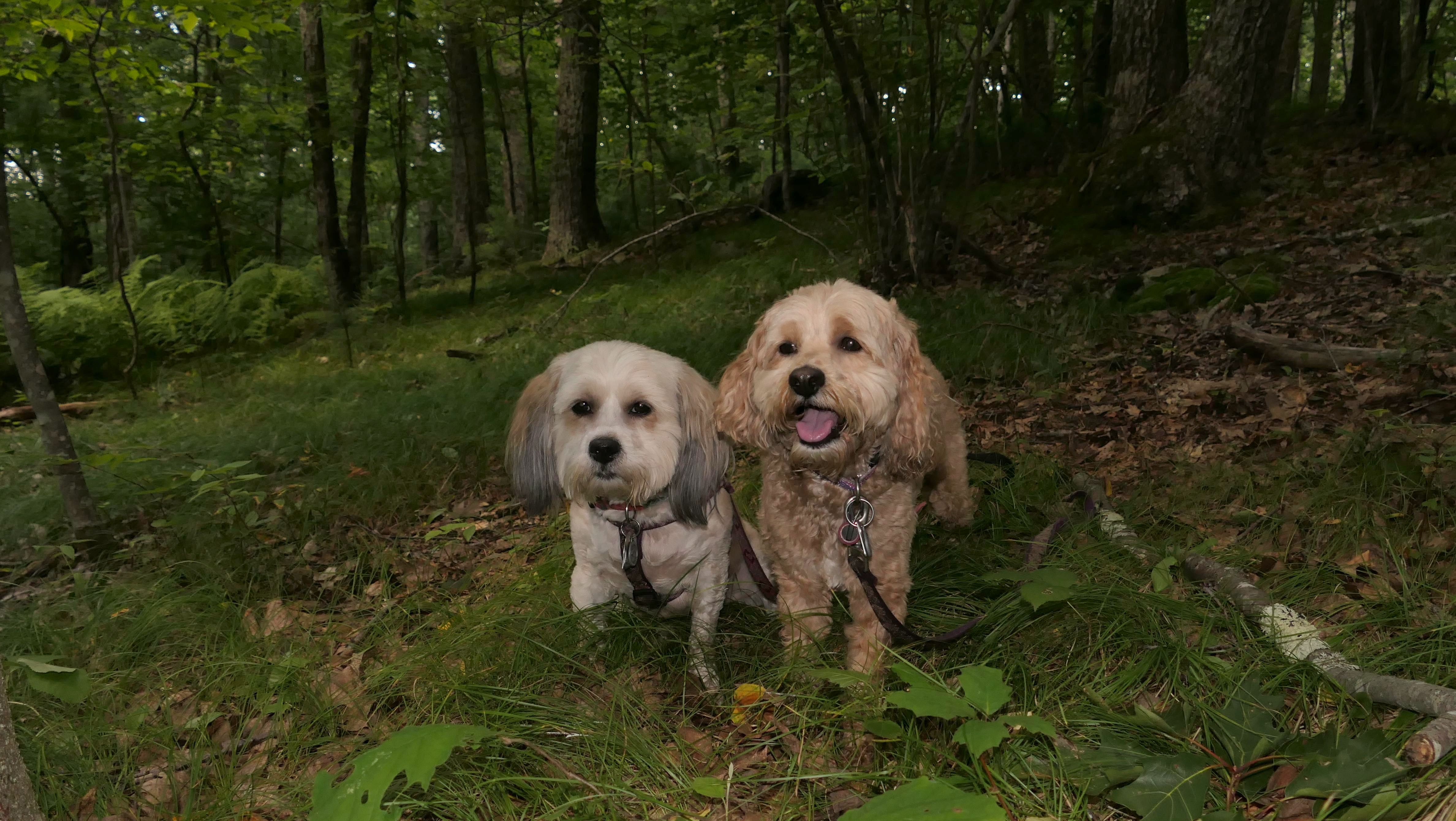 This is a cool hike to the corner of where three states intersect. We start from the Air-Line trail, and then hike up a pretty steep hill. We arrive at the peak and there is a marker to indicate the borders of Connecticut, Massachusetts and Rhode Island I know it's really silly, but I kept posing the dogs so that one of them would be standing in one state, and the other one would be in another state, until I got every combination.