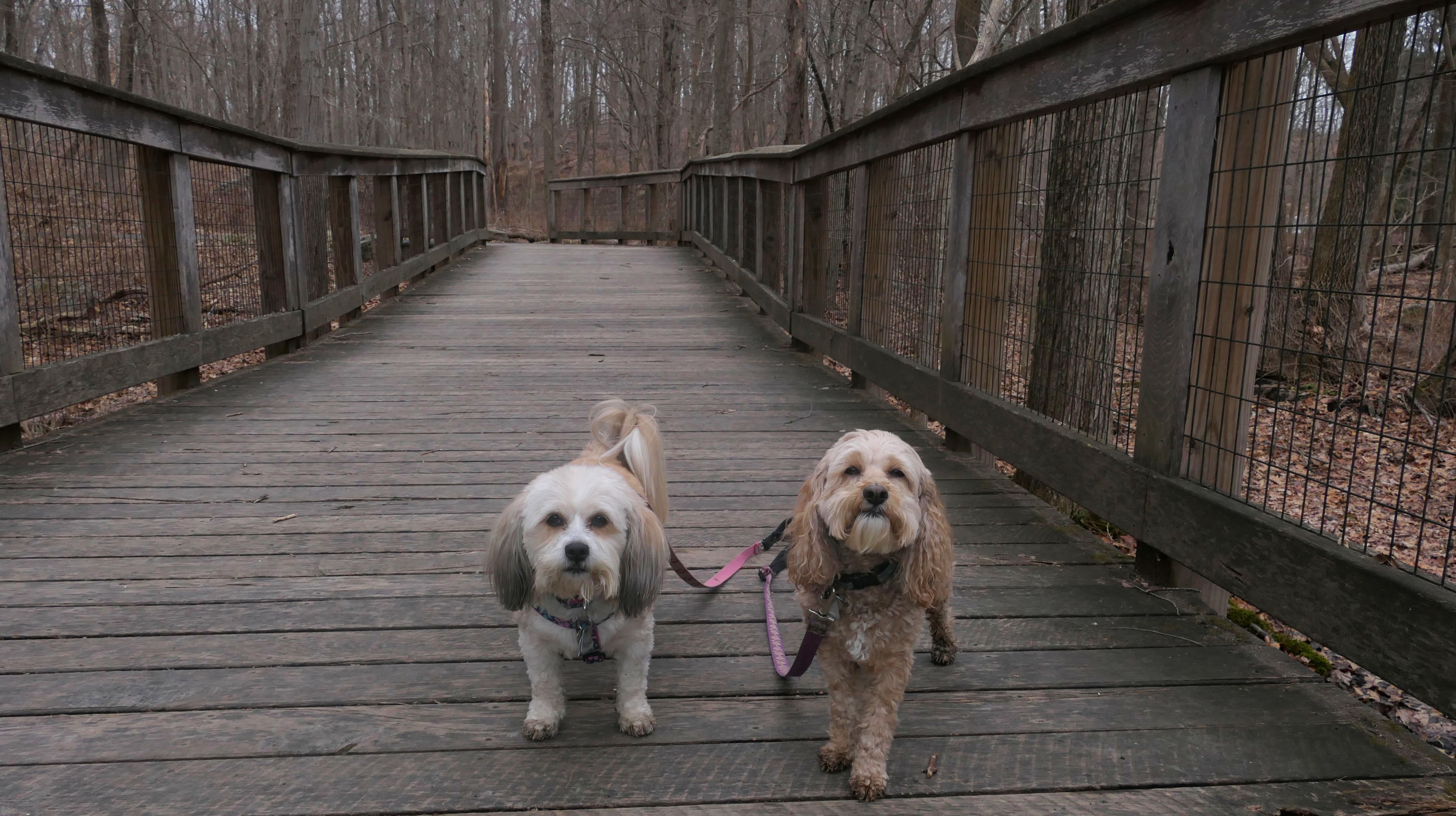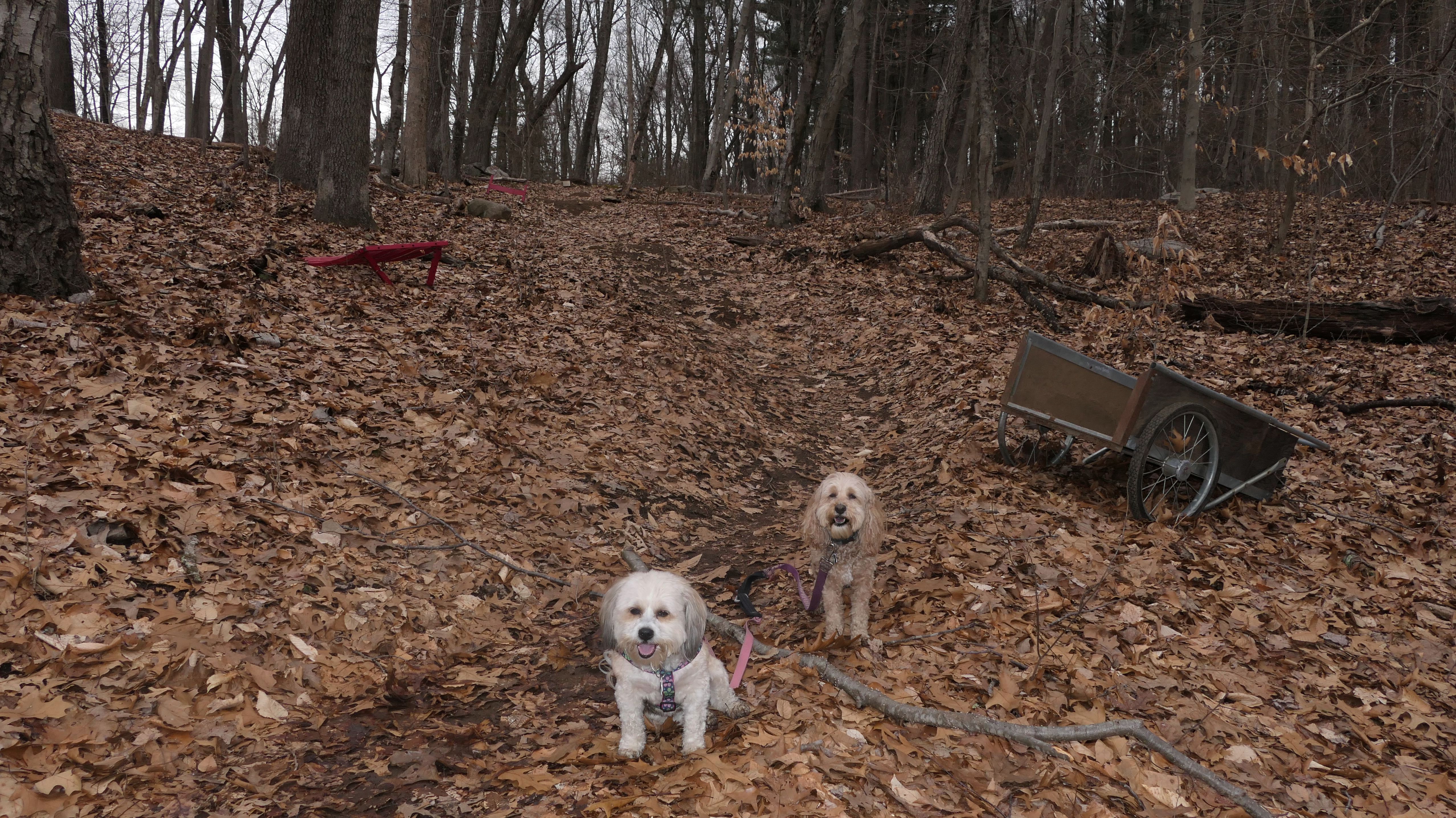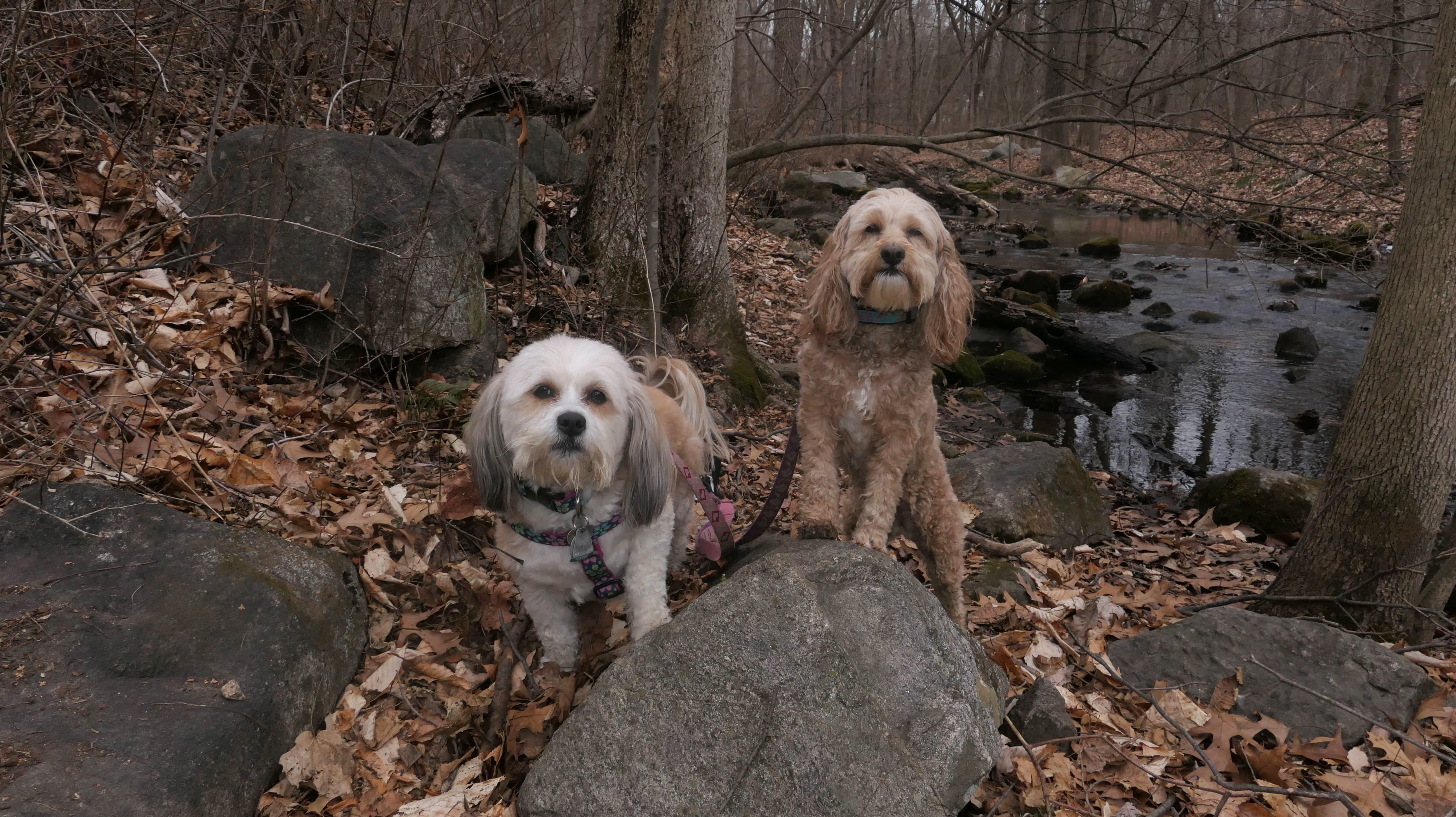 Well, this trail was a mistake! First of all, I got stuck in traffic for 20 minutes on the Merritt Parkway on the way here. When we arrived, the trail was extremely muddy. This is the muddiest I've ever seen a stone dust trail. This is another section of the trail that we walked a few days earlier in Norwalk. I'm sure the trail is pretty nice normally. We started at a commuter lot near the juncion of US-7, CT-33, and CT-106 and hiked up hill about two miles to the Twin Oaks Lane parking area, with of course another two miles back down. It was another unseasonably warm day, 60 degrees in the middle of February. Evidently that caused some rapid melting. I spoke to a jogger who told me the trail was a sheet of ice the other day, so I guess the mud is beter than ice. Needless to say the dogs weren't very happy with me as they both went right in the tub when we got home!
