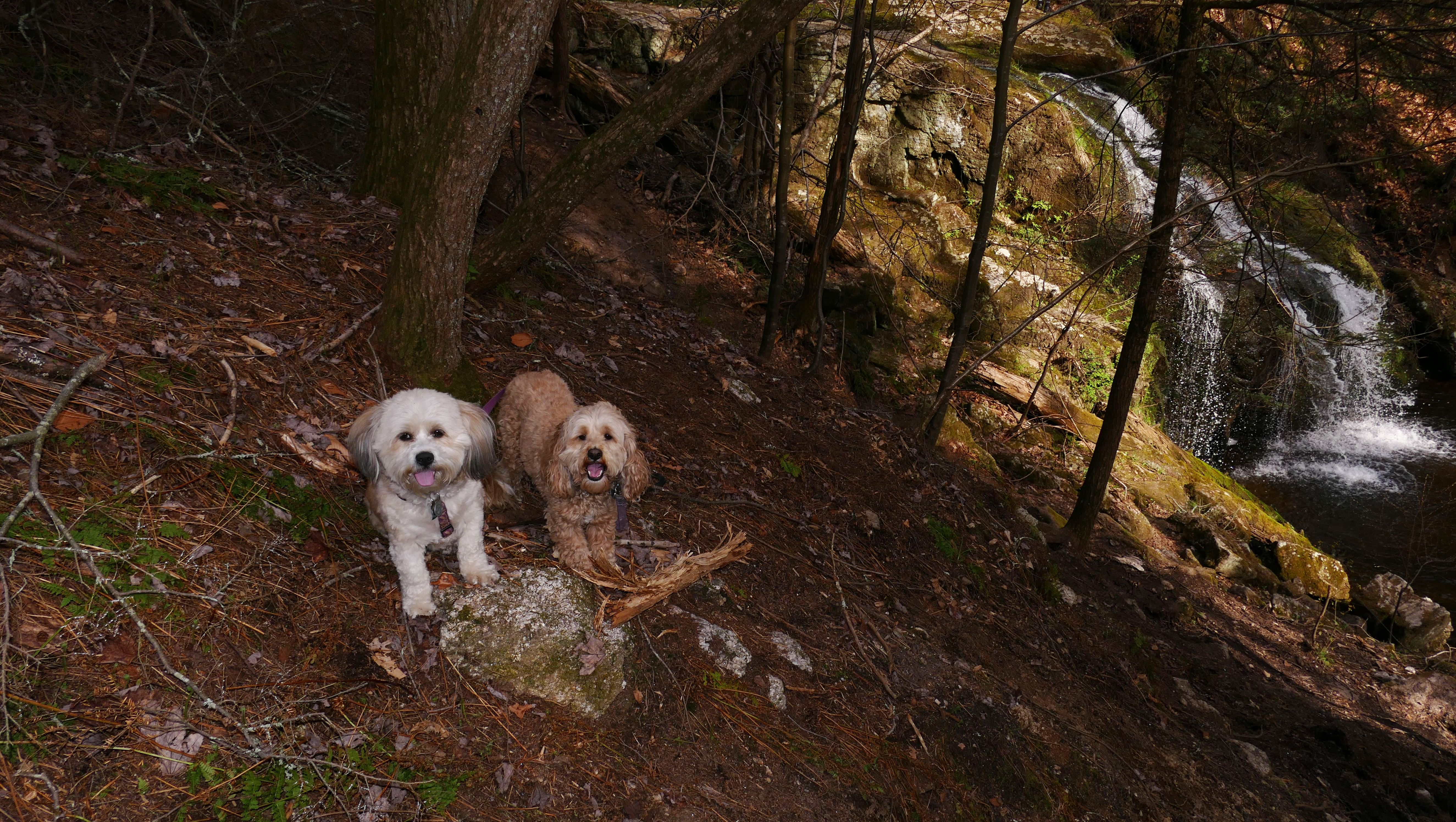 On the map it looked like the falls were in Bethlehem, but the falls themselves and most of the trails are in Woodbury. Only the parking area and very beginning of the trail are in Bethlehem. We hiked up the trail and made are way to the falls. There is a pretty steep climb down, so we didn't take pictures from the bottom. We did go to the very top of the falls and take some photos, and we took some from the side where you can see the falls.