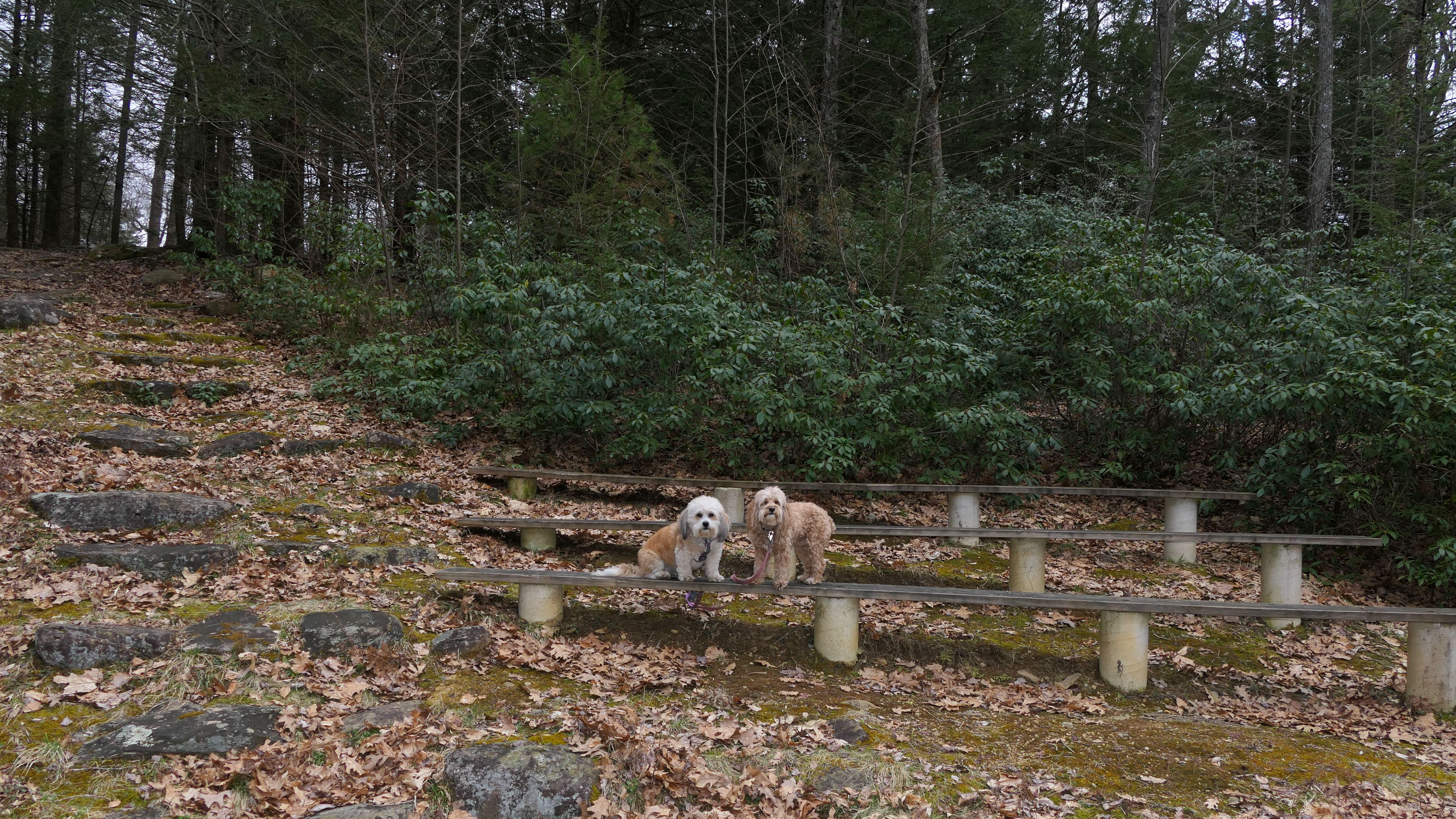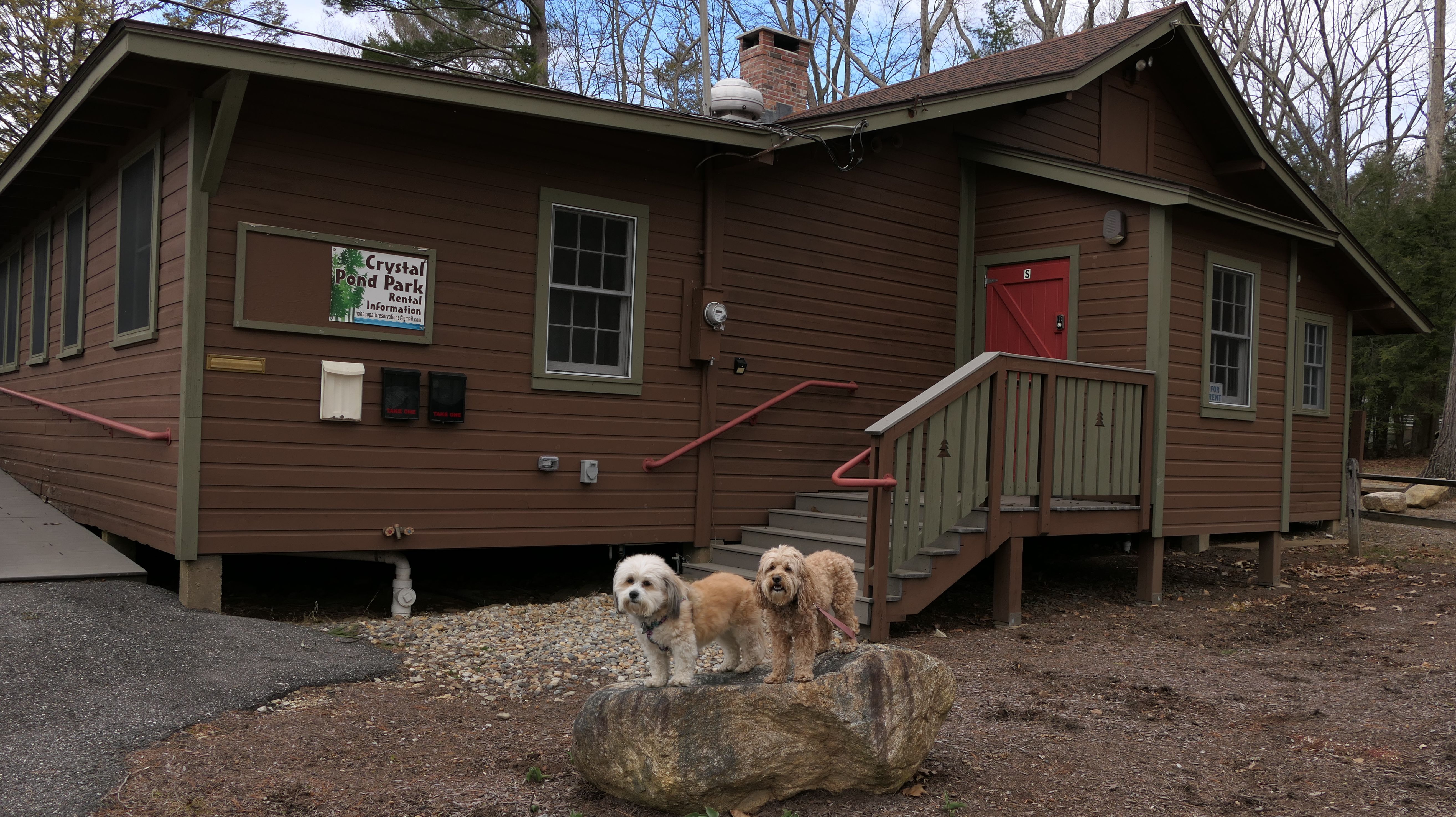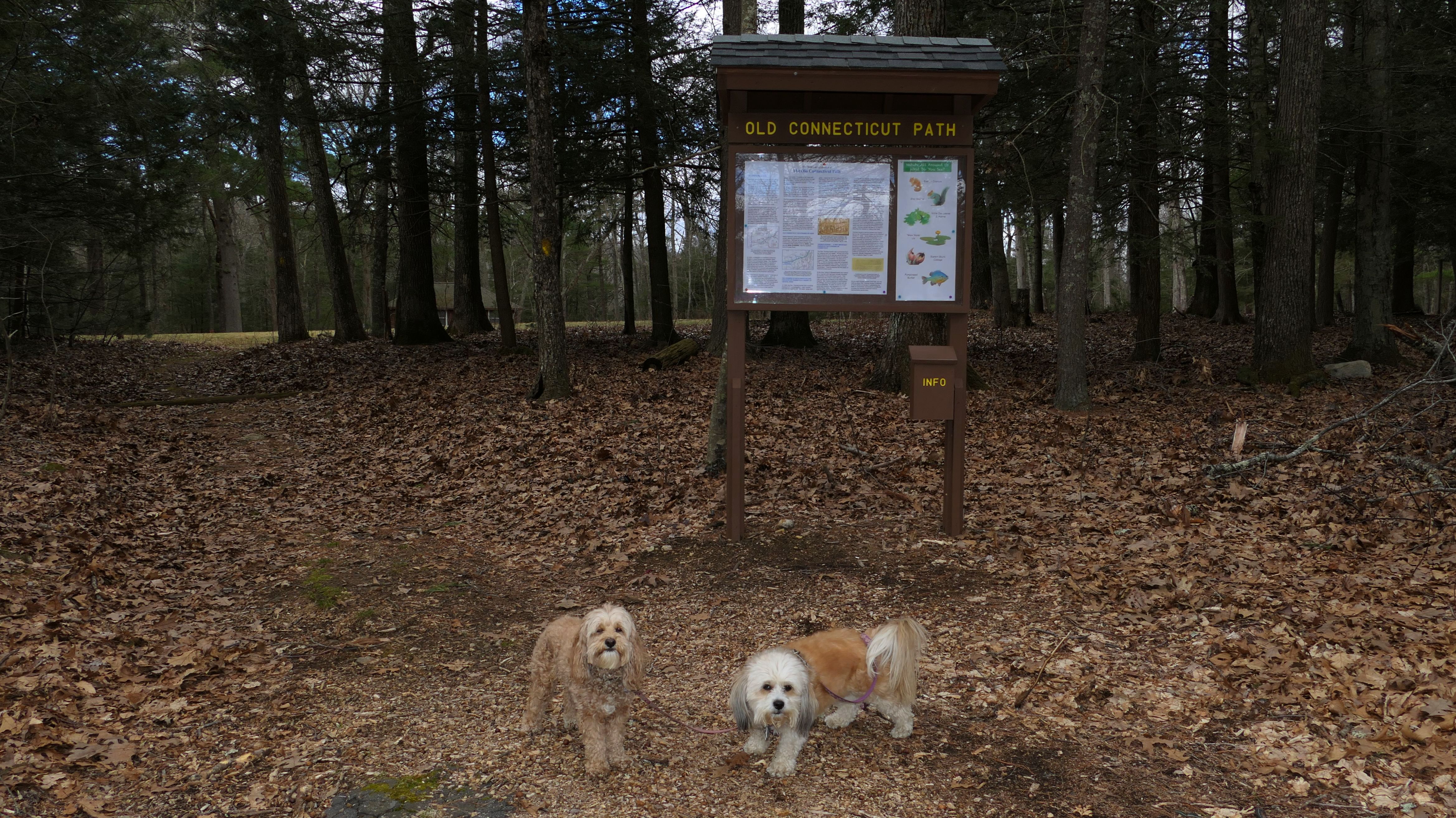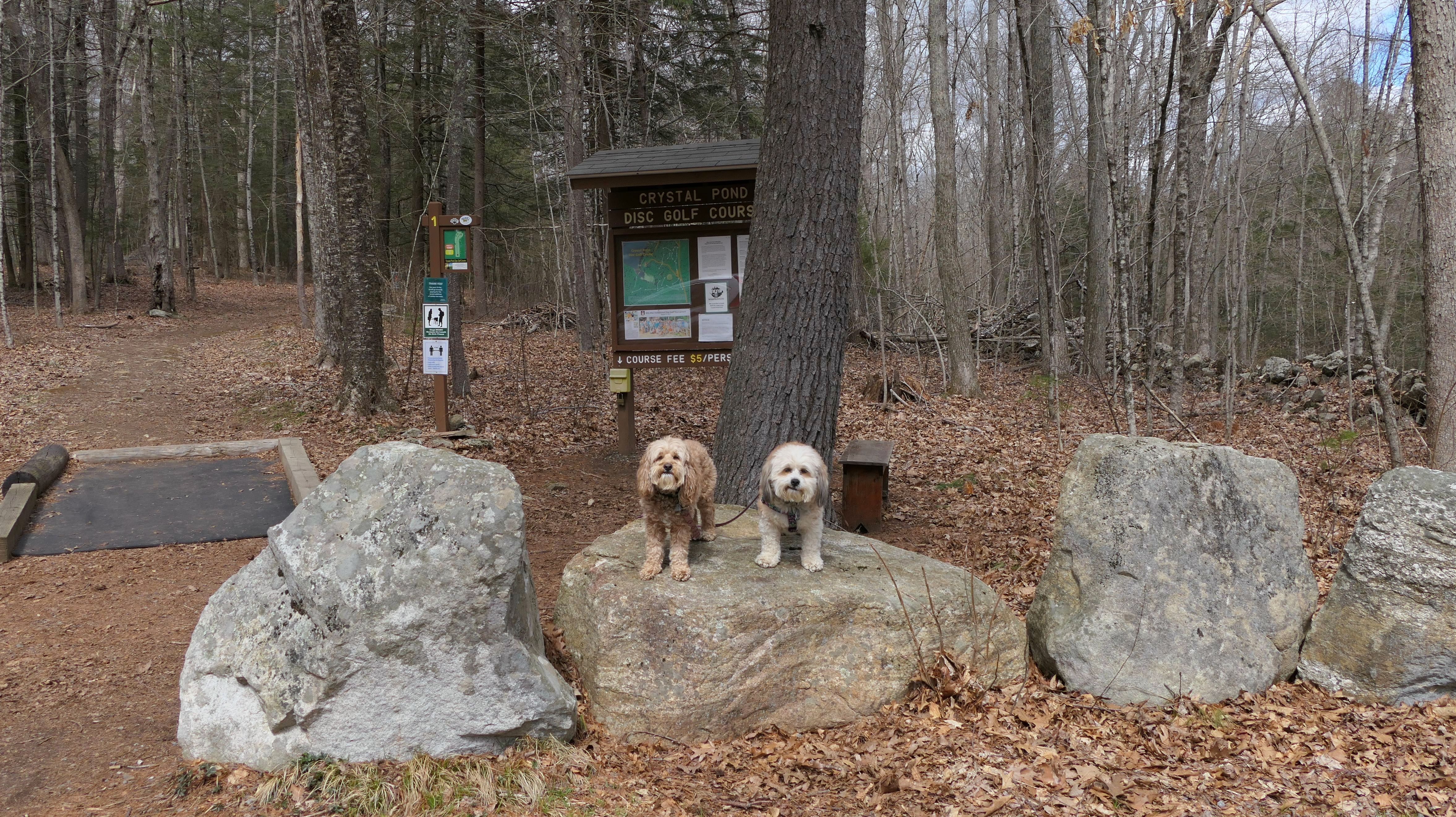 Formerly known as "Camp Nahaco", Crystal Pond Park is jointly owned by the towns of Woodstock and Eastford. As town parks go, this one is pretty nice. It was formerly a Boy Scout Camp, but hasn't been used as a camp since the late 70's. The towns purchased the property from the Boy Scouts in 2003, and fixed it up after years of neglect. In 2017 it was renamed to Crystal Pond Park. The disc golf course seems to be the main attraction, but the park is also used for hiking, fishing and swimming. Leashed dogs are welcomed here, which isn't always the case at these types of parks. There are two signed trails, "Cove Trail" and "Trout Pond Trail". We hiked the "Trout Pond Trail", which is mainly in the Eastford section of the park. Trout Pond is nothing special, but it was a nice hike. My main issue is that the trails here aren't on the All-Trails app, or on the Mapbox/Open Street Map maps that the All-Trails maps are based on. I couldn't find any sort of trail maps online except for some hand drawn ones that aren't to scale. Once we reached Trout Pond, I didn't know if the trail looped back around or kept going, so we actually completed the loop by walking on the road back to the park entrance. Once we got back to the regular part of the park, we explored some more. It was a chilly, raw day (very unusual, as it's been so unseasonably mild lately). I think we would have enjoyed the park more if the weather was nicer. Mandy would have been able to sit in the pond! The pictures below are from the Woodstock section of the park. Be sure to check out the Eastford page for pictures from that section.