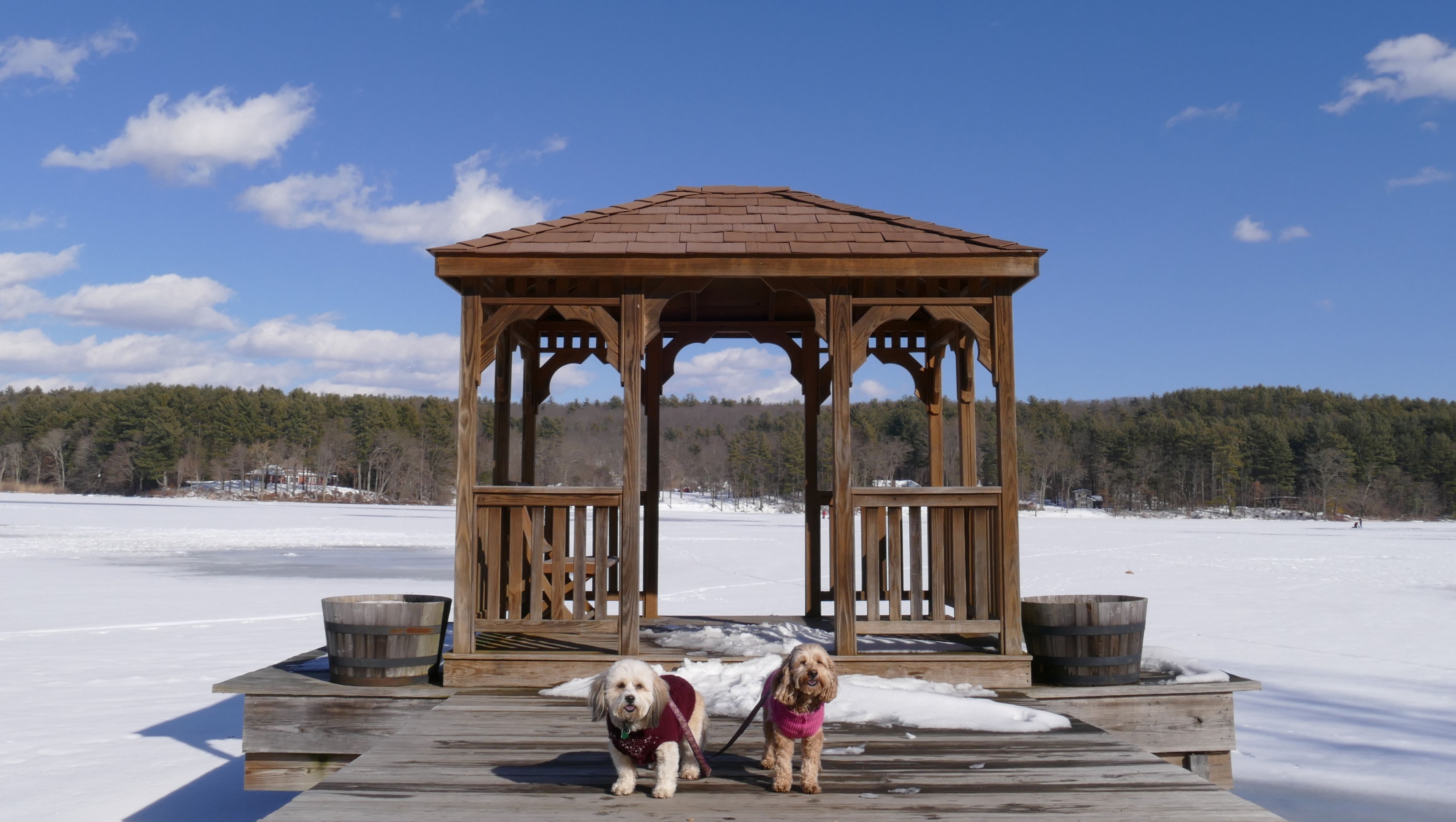 This is a nice park in the town of Woodstock. It was unusual because of the different buildings, some of which you can go inside. They were open to the air, so it wasn't like you were truly indoors by any means. Despite being the middle of winter and a half foot of snow on the ground, people were barbecuing and picnicking.